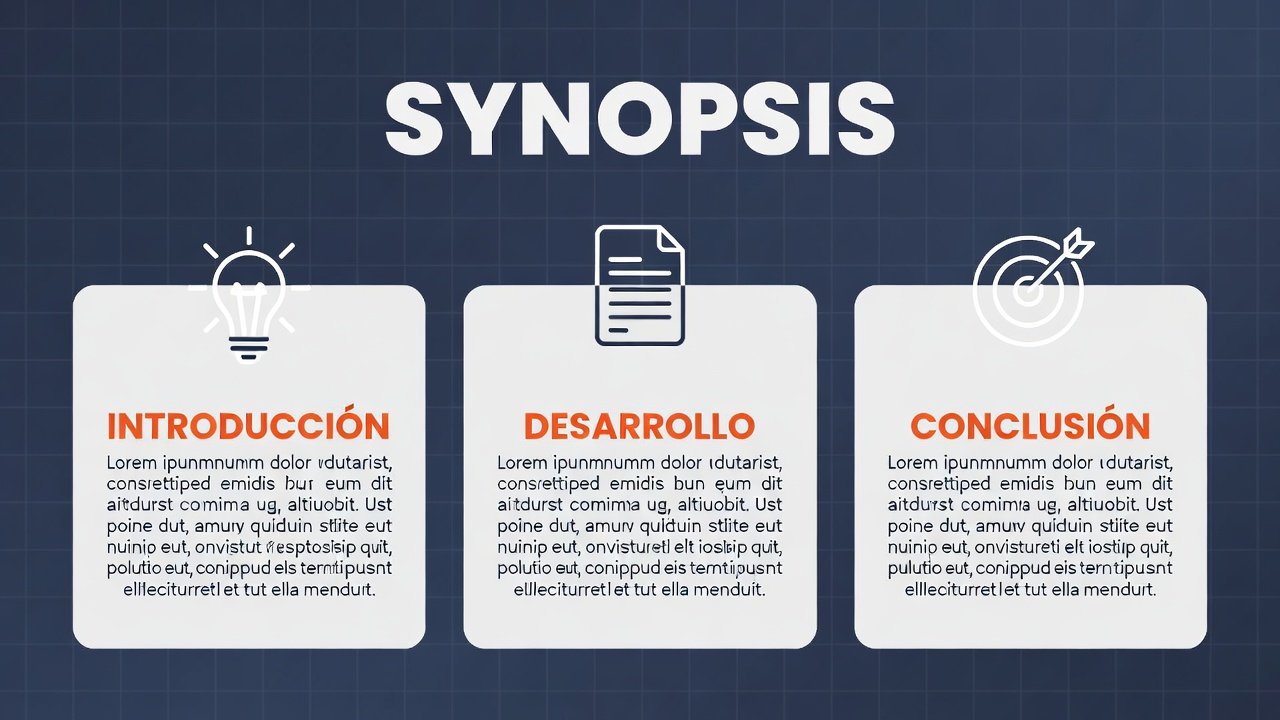 La Sinopsis, es un pequeño resumen más detallado que el Storyline en donde también tiene inicio, medio y final, pero acá se agrega una pequeña definición de los personajes, algo corto y definitorio. Se agregan nuevos personajes y se define más el conflicto. Descarga el modelo de sinopsis y respeta los colores. Para hacer un póster usar la IA GROK https://grok.com/imagine con el siguiente Algoritmo: